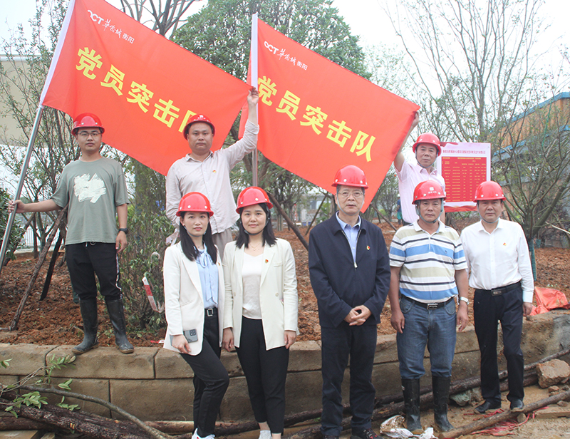 最后,大家扛起黨員突擊隊(duì)隊(duì)旗在園區(qū)內(nèi)插旗定“區(qū)”,讓黨旗飄揚(yáng)在項(xiàng)目現(xiàn)場(chǎng),責(zé)任區(qū)公示在工地各處。